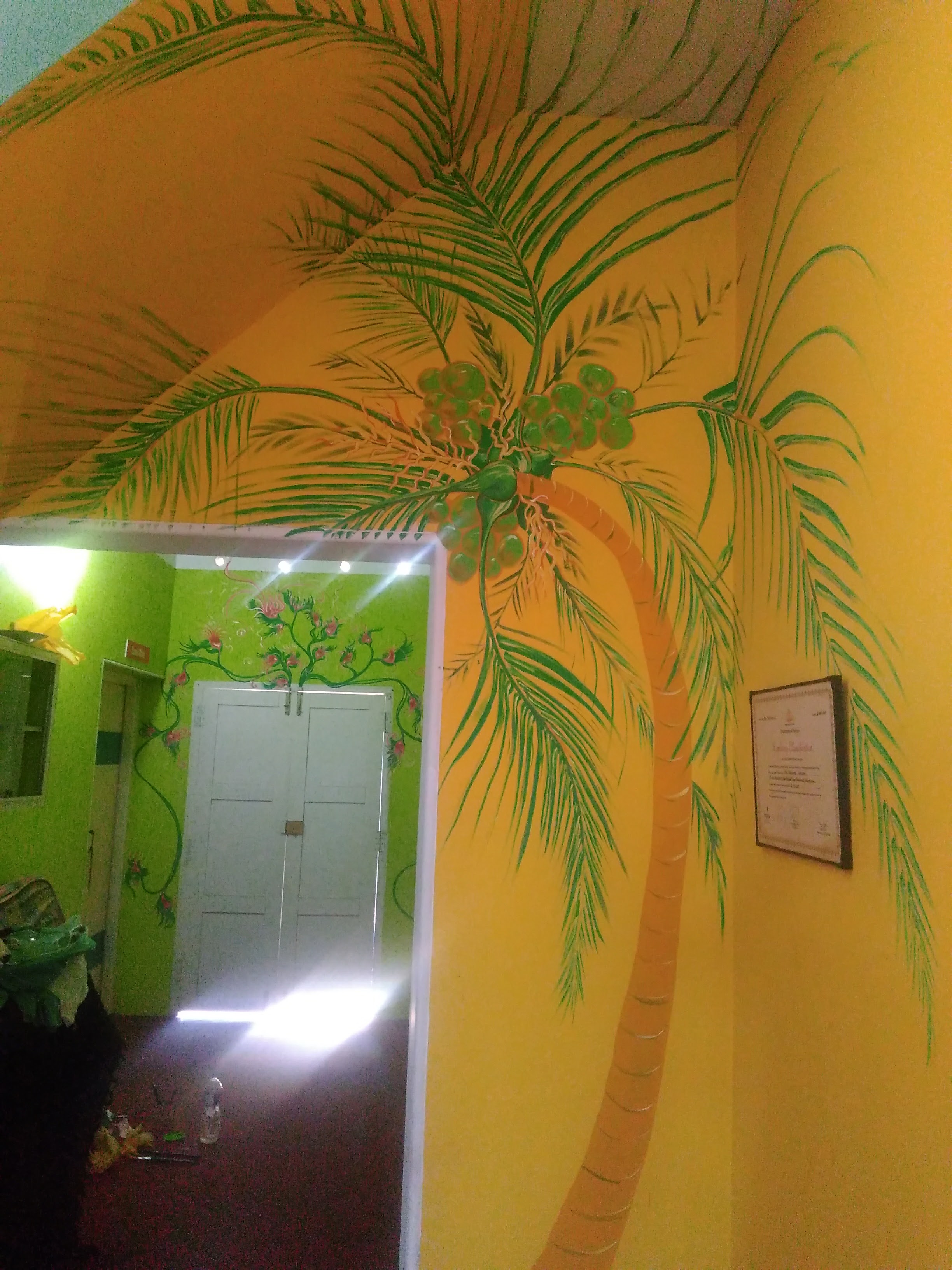 Spread your Wings to Fly in the Wind Coconut Palm in Hotel in Kerala, IndiaPink Flowers Adorn a DoorwayStairway to Swirl Heaven